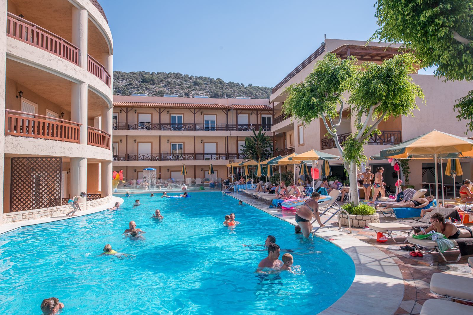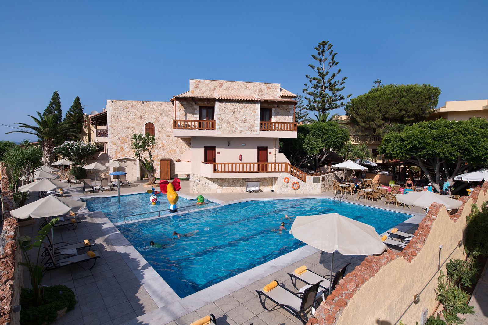 Vlakbij de kustplaats Stalis ligt het complex van Cactus Beach. Aan de andere kant van het hotel op ongeveer vijf kilometer ligt Chersonissos. Cactus Beach zelf ligt nagenoeg aan het strand en beschikt over ongeveer 380 kamers. Elke ruimte in het hotel heeft airco, een koelkast en een terras of balkon. Ook is er een toilet en een bad of douche aanwezig op elke kamer. De kamers variëren, de standaardkamer biedt ruimte voor een tot drie personen terwijl in de familiekamer maximaal vier mensen kunnen.
